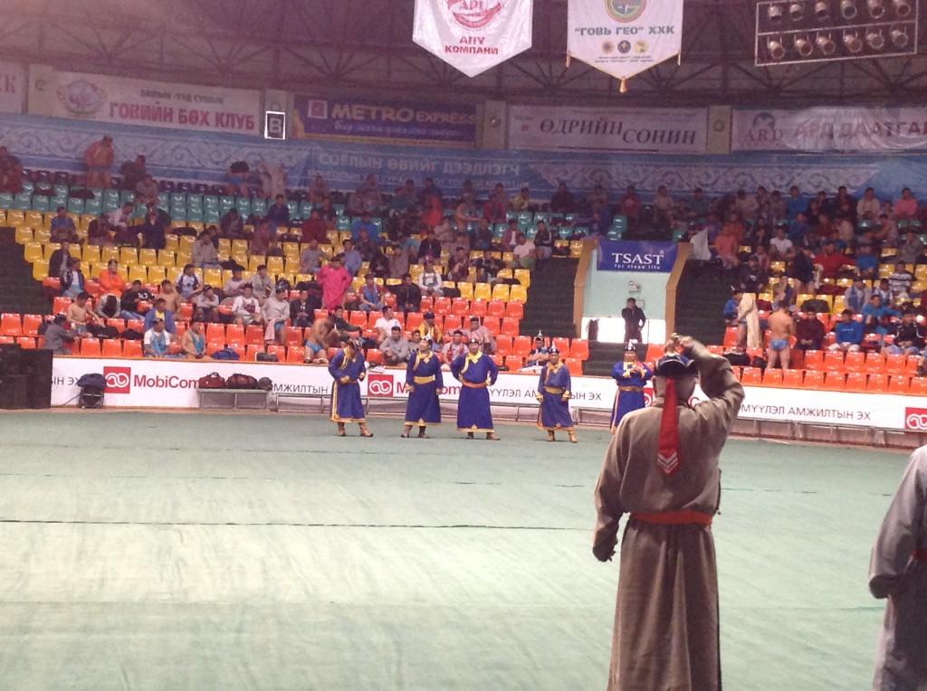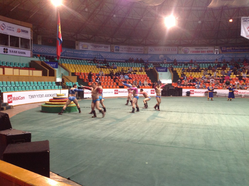 Mongoliassa on kolme suosittua urheilumuotoa; ammunta, ratsastus ja paini. Niinpä suunnistimme suurehkoon painipalatsiin. Äijää alkoi lappaa molskille perinteisissä asuissa pipo päässä, pienet shortsit jalassa ja mukanaan kevyt paita, josta kierrettiin vahvahko naru miehen ympäri. Noin 35 metrin halkaisijalla olevalla matolla oli samaan aikaan kymmeniä painijoita ja aina kun joku kellahti molskille, häviäjä irroitti narun ja läpsäytti voittajaa takamuksille. Äijiä riitti aina vain ja vajaan kolmen tunnin kuluttua poistuimme salilta, saas nähdä kuka voitti, luetaan huomisesta lehdestä.