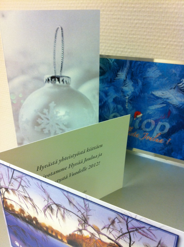 Toimittajat ja asiakkaat muistavat joulukorteilla, joita Itellan mies meille selkä vääränä kantaa.