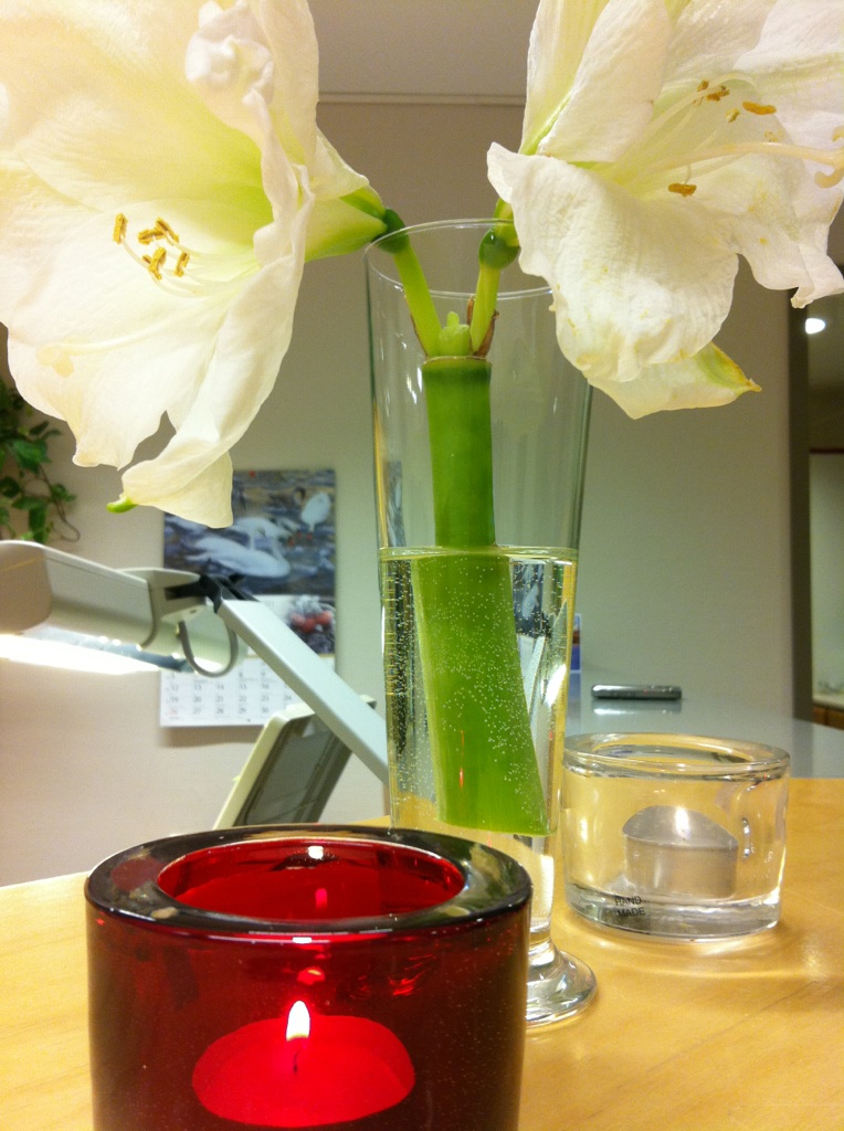 Sain yllätyskukkalähetyksen lahtelaiselta kukkakaupalta Keijunkehrältä. Joulukukka ilahduttaa vastaaottotiskillä. Kun kukan varsi alkoi nuupattaa, annoimme sille vielä uuden elämän lyhyempänä versiona.