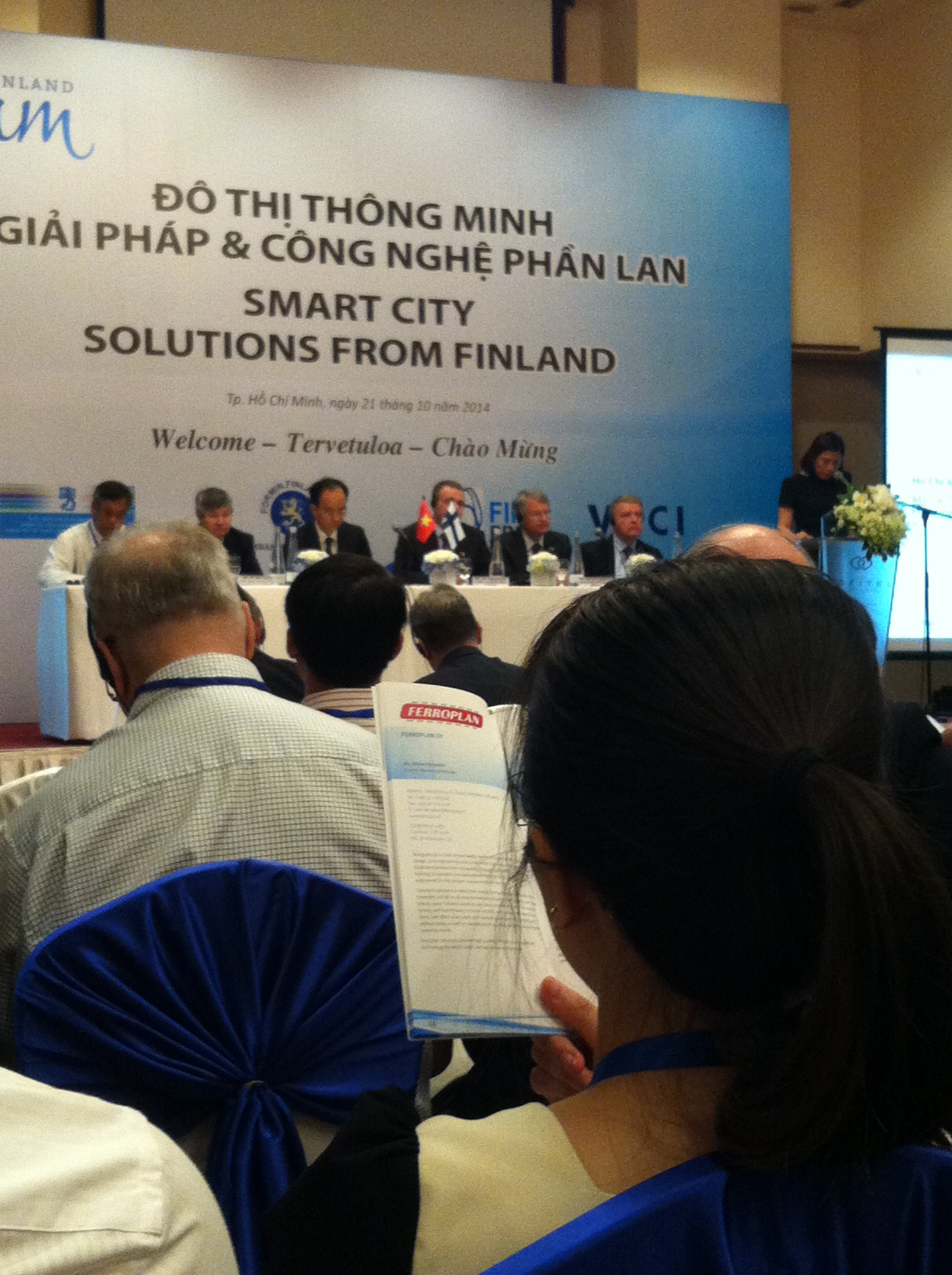 Smart City -seminaarissa Ho Chi Minhissä. Tuolla edessä olevalla mimmillä on lukemiset kohdillaan!